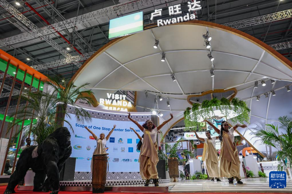 11月5日,演員在第八屆進博會國家展盧旺達館表演舞蹈。