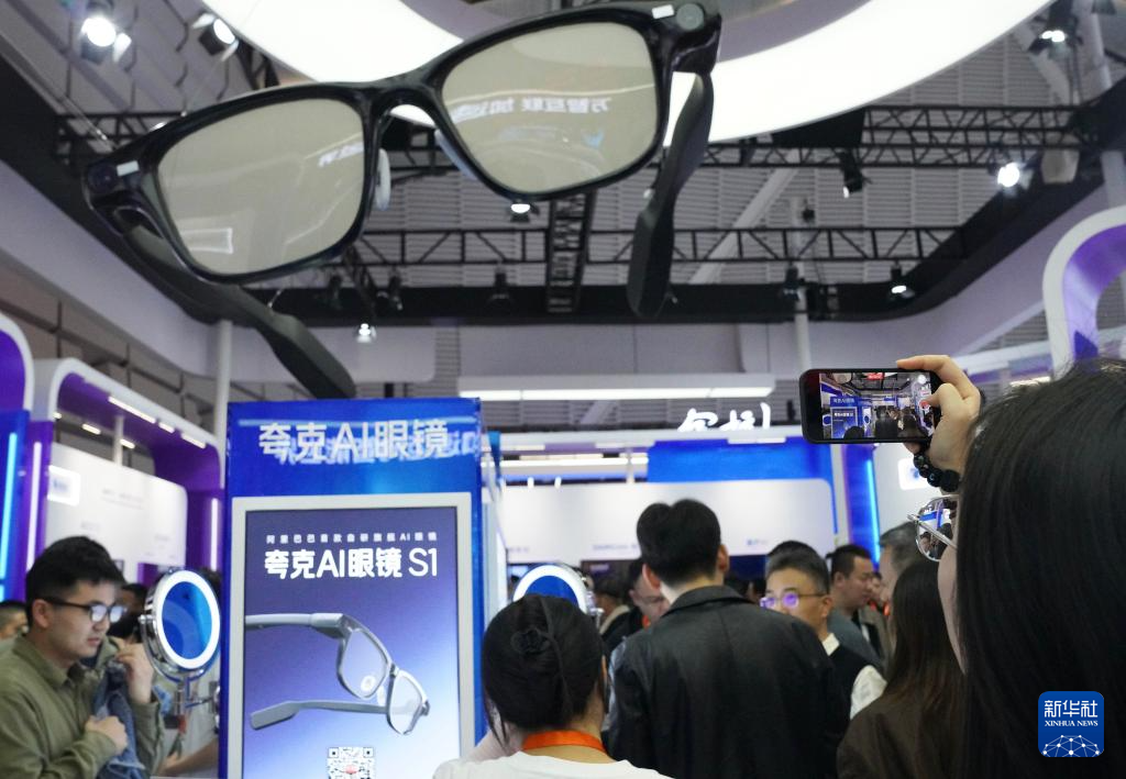 11月6日,觀眾在2025年世界互聯網大會“互聯網之光”博覽會現場的AI眼鏡展臺參觀拍照。