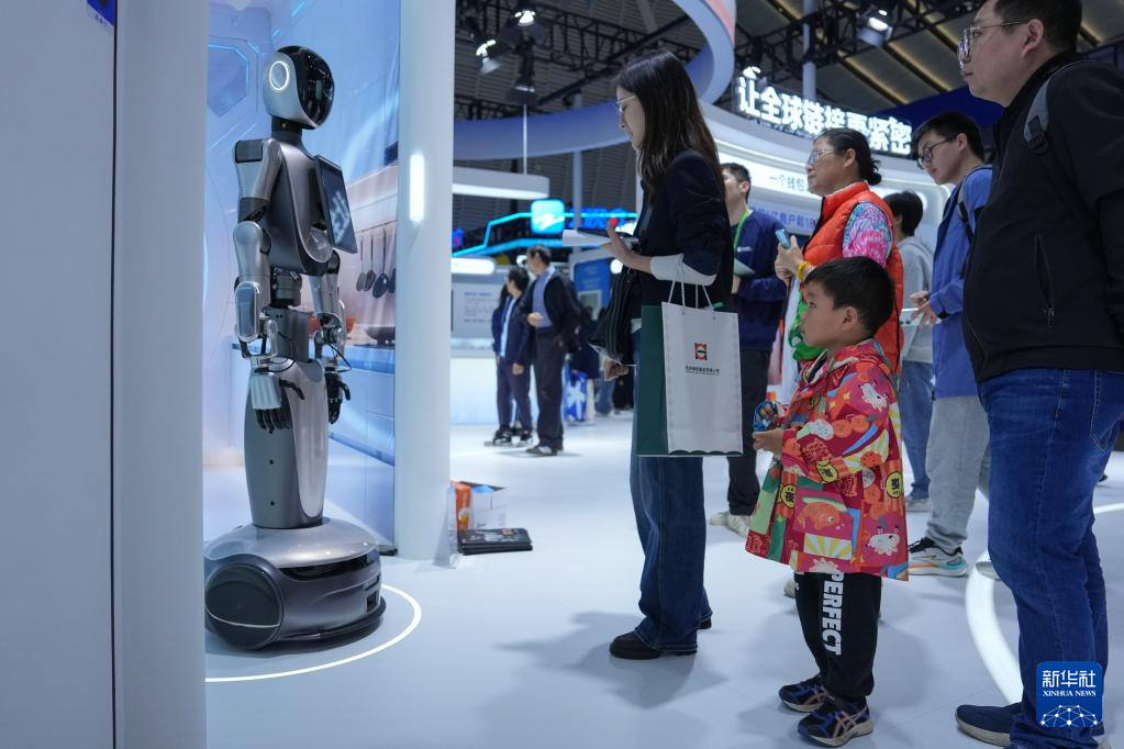 11月6日,觀眾在2025年世界互聯網大會“互聯網之光”博覽會現場觀摩一家企業展示的人形機器人。