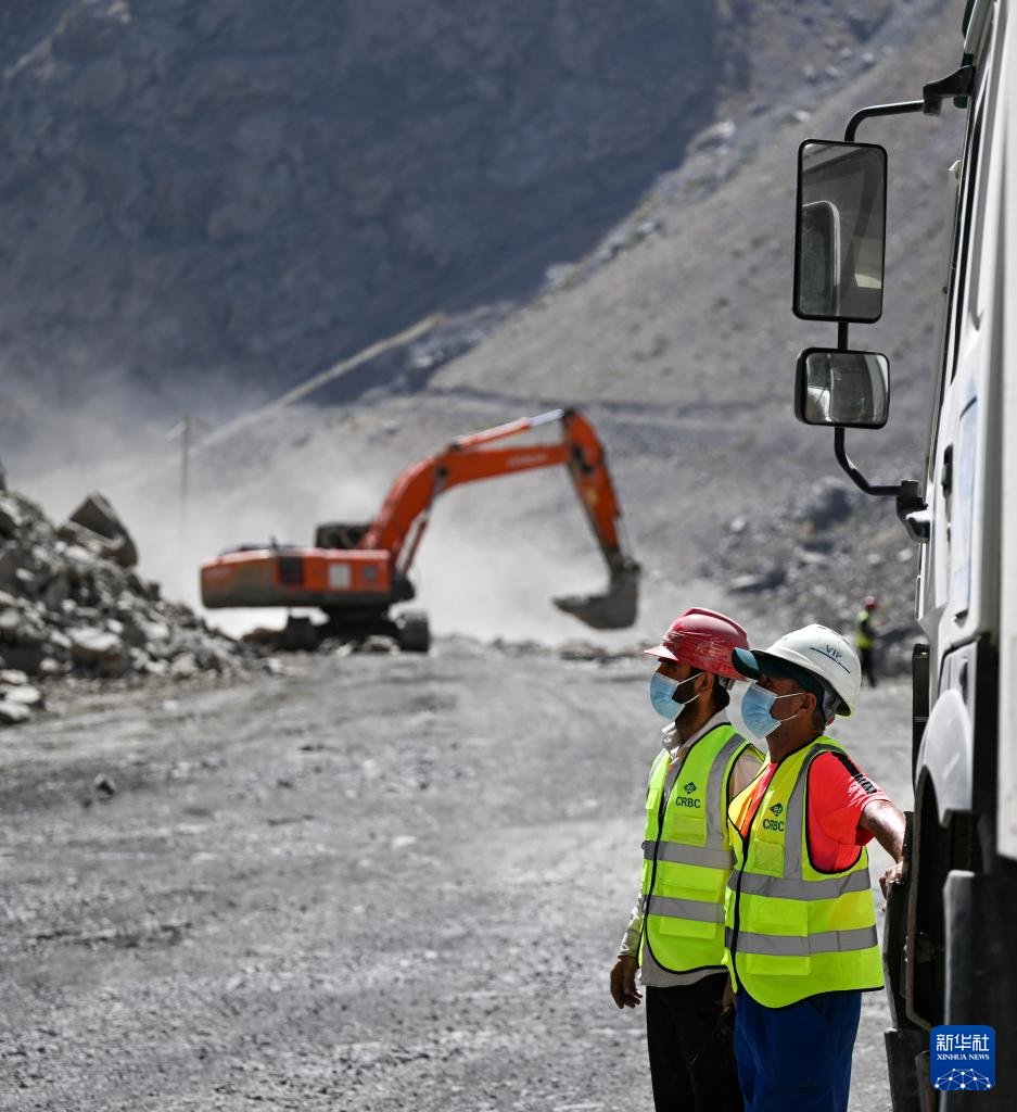 9月11日,塔方員工在塔吉克斯坦卡拉依洪姆村附近的中塔公路二期工程施工現場工作。