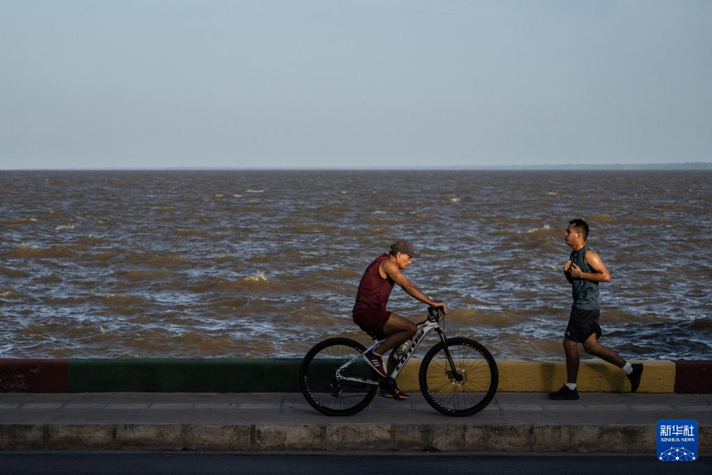 11月9日,在巴西馬卡帕市,人們在亞馬孫河畔運動。