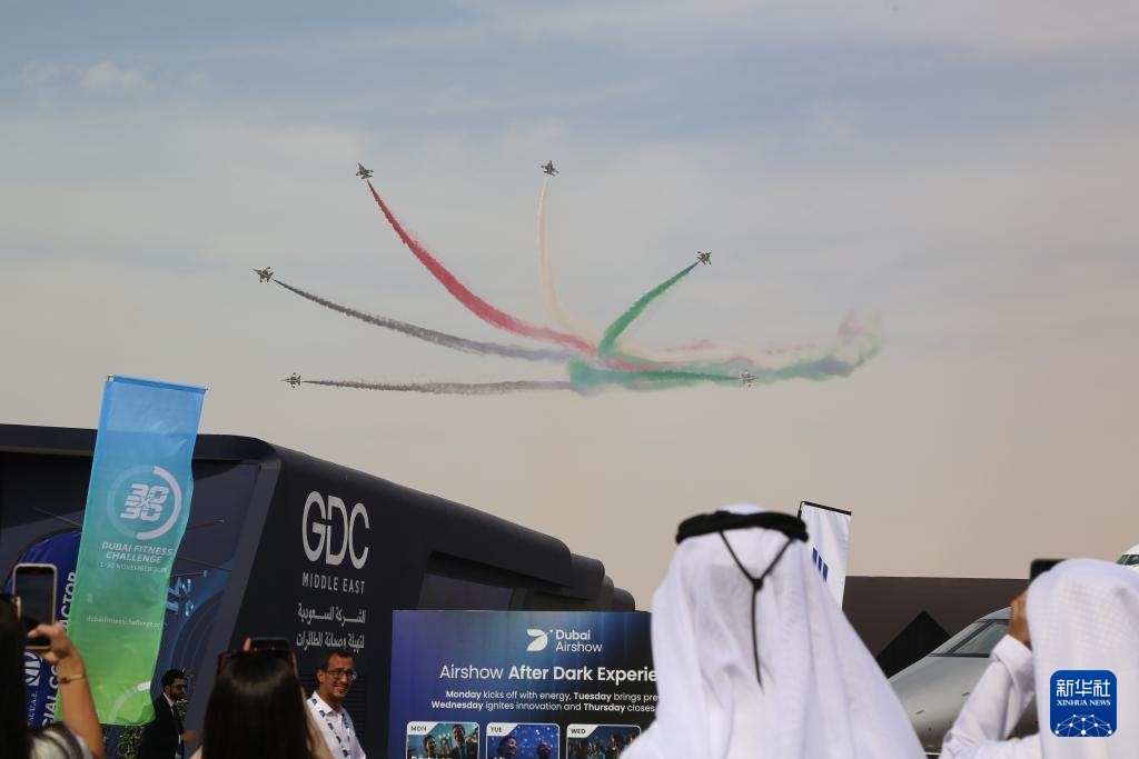 11月17日,在阿聯酋迪拜,飛機在2025迪拜航空展上進行飛行特技表演。